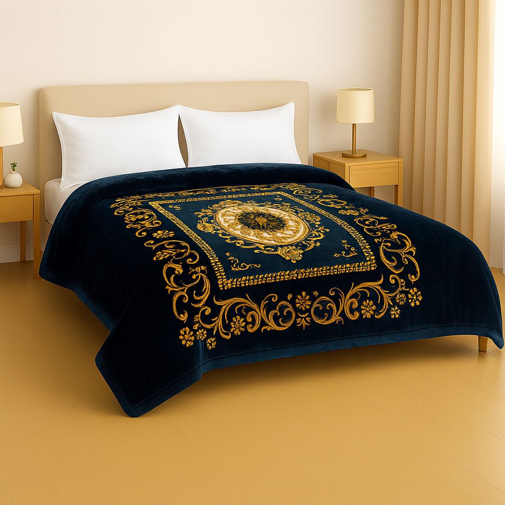 1 Ply Double Bed Mink Blanket (Royal Medallion)