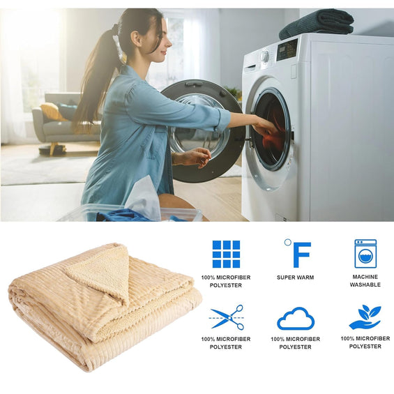 - Dual-sided Luxury: Sherpa on one side for a plush, warm embrace, and a stylish flannel ribbed stripe pattern on the other for added elegance.