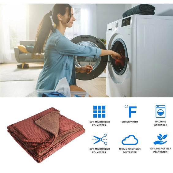 - Dual-sided Luxury: Sherpa on one side for a plush, warm embrace, and a stylish flannel ribbed stripe pattern on the other for added elegance.