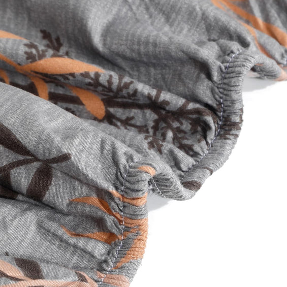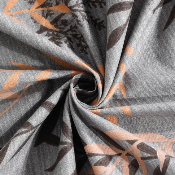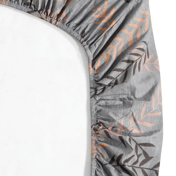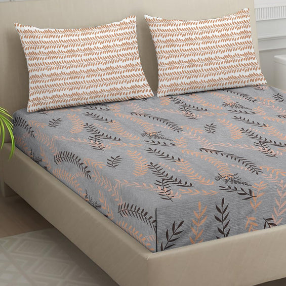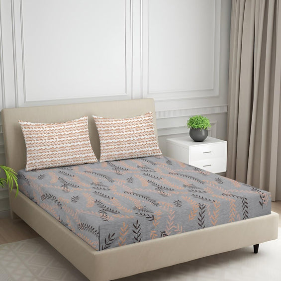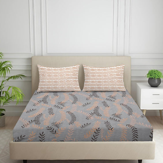Fitted King Bed Bedsheet with Pillow covers (Autumn Fern Grey)