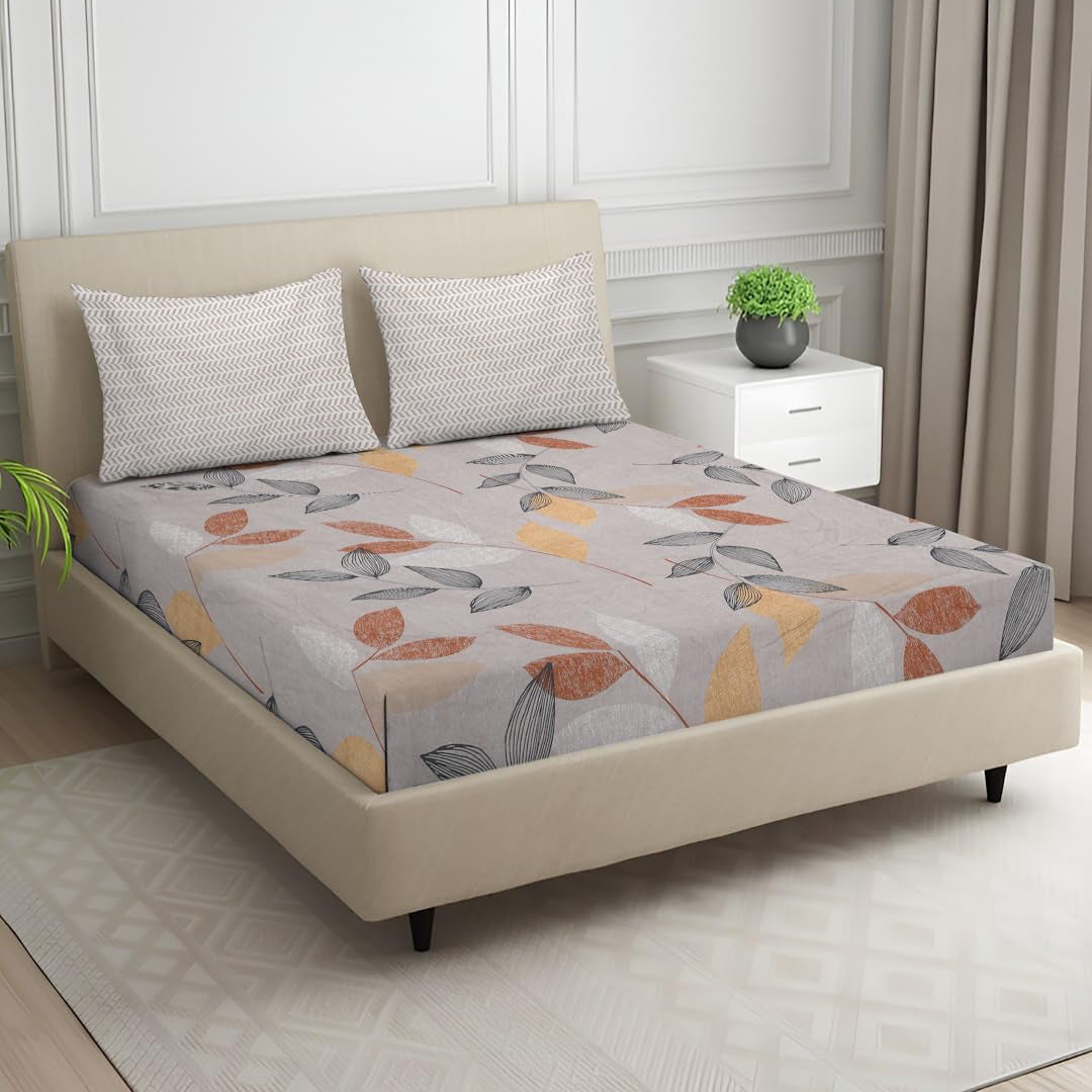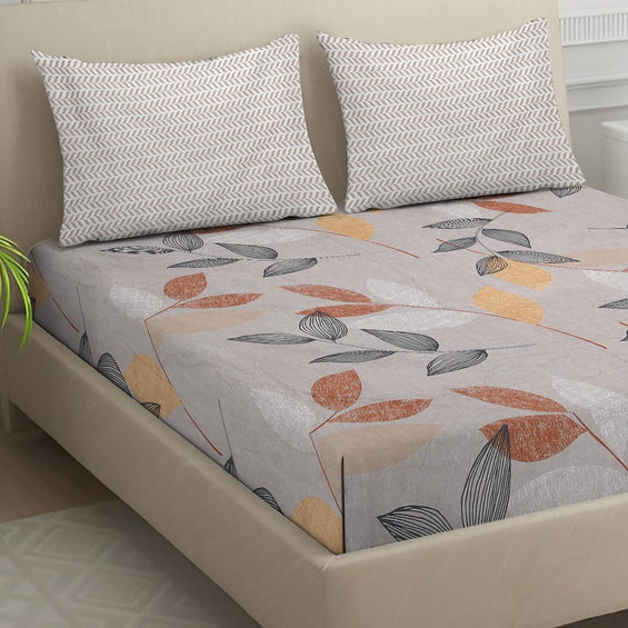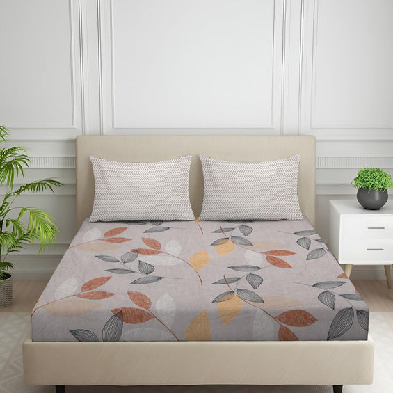 Fitted King Bed Bedsheet with Pillow covers (Botanic Aura)