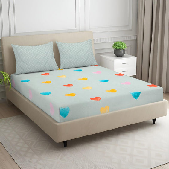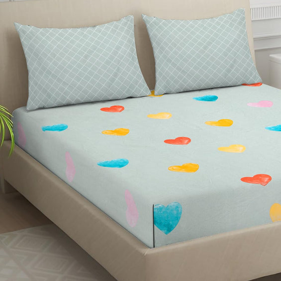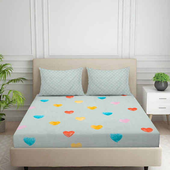 Fitted King Bed Bedsheet with Pillow covers (Pop of Love)