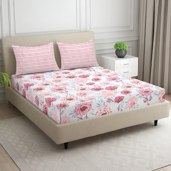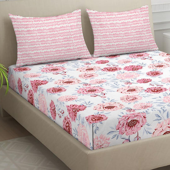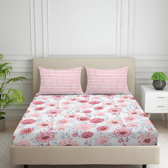 Fitted King Bed Bedsheet with Pillow covers (RosŽ Reverie)