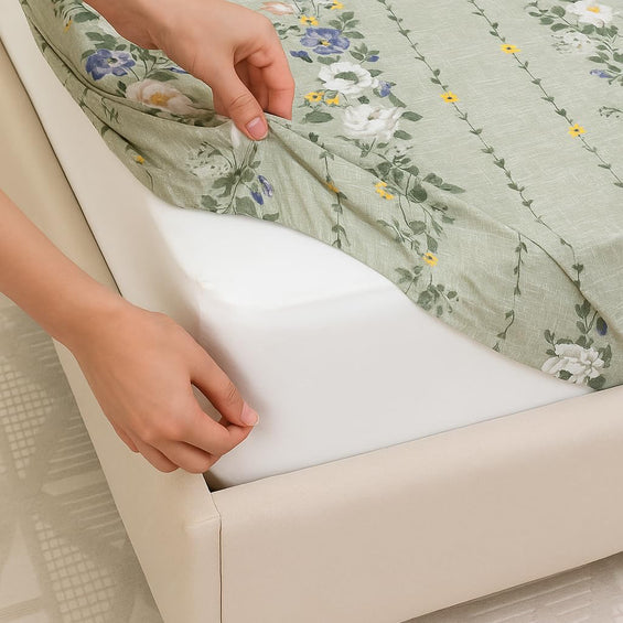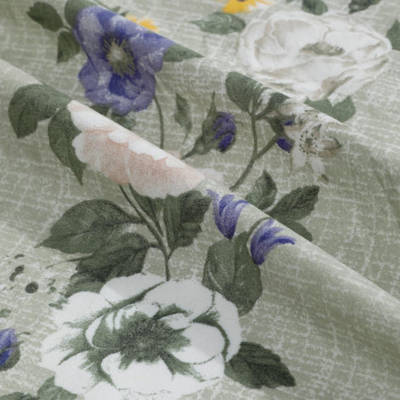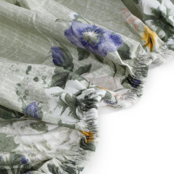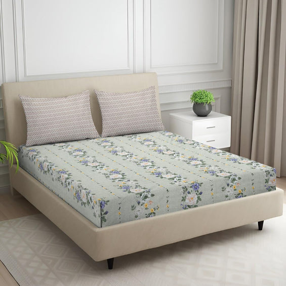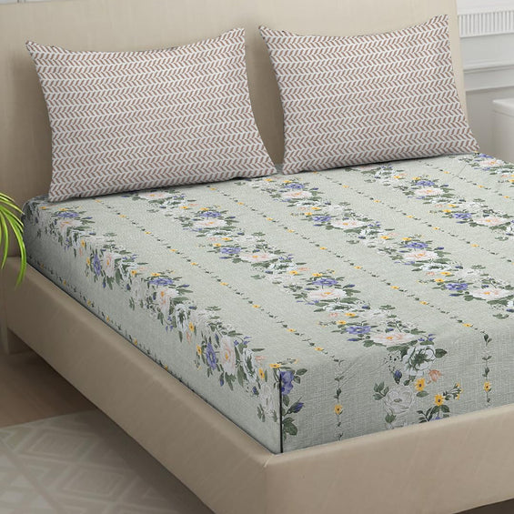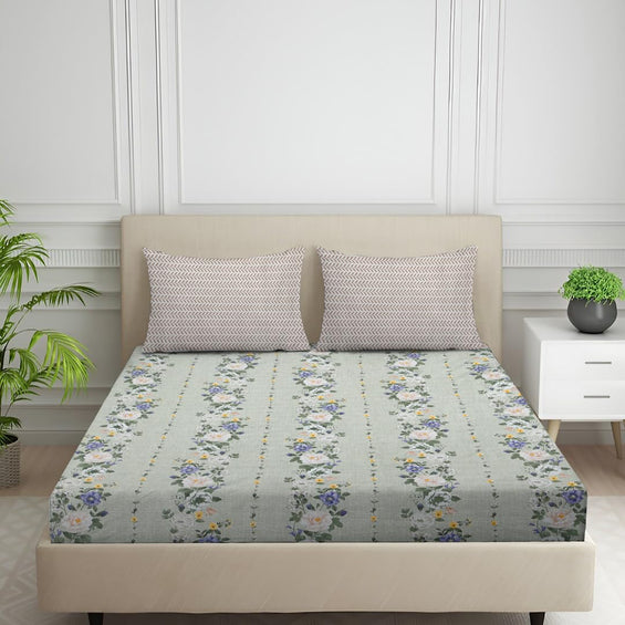 Fitted King Bed Bedsheet with Pillow covers (Vintage Meadow Bloom)