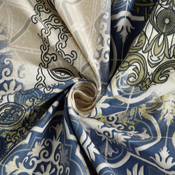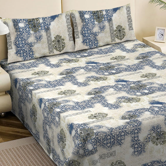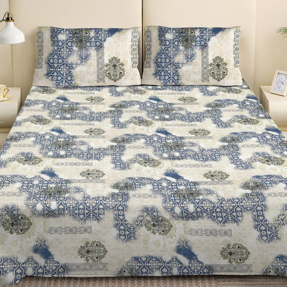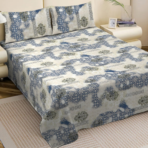 King Bed Bedsheet with Pillow Covers (Azure Patchwork Charm)