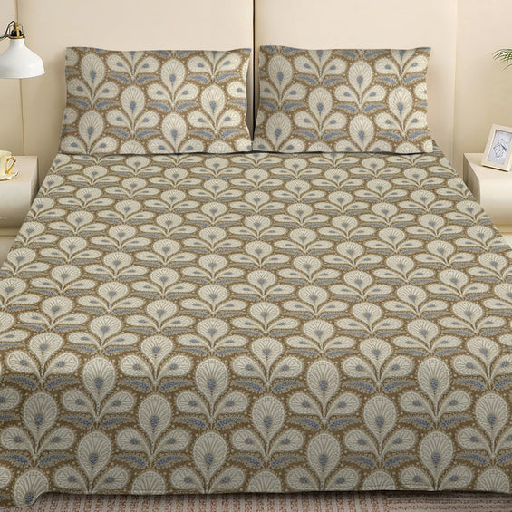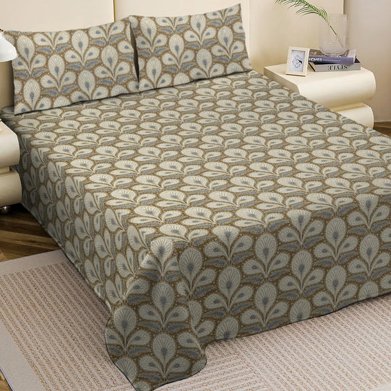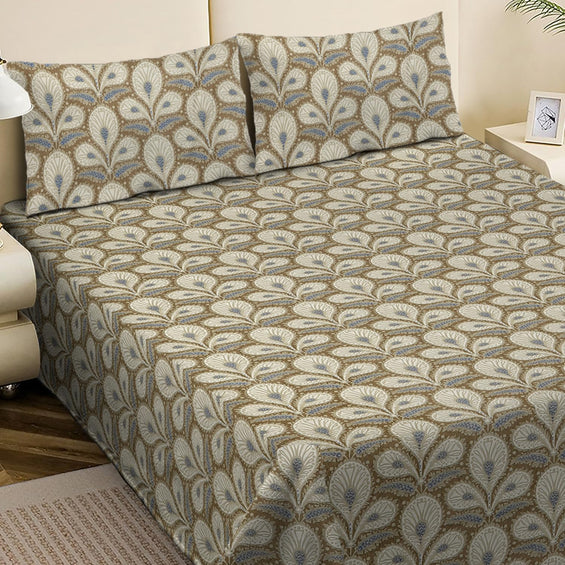 King Bed Bedsheet with Pillow Covers (Olive Feather Bloom)