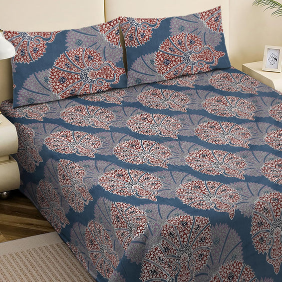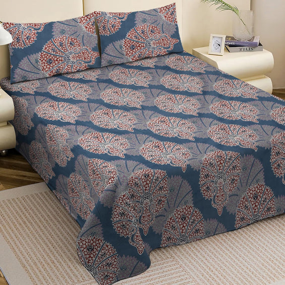 King Bed Bedsheet with Pillow Covers (Persian Paisley Radiance)