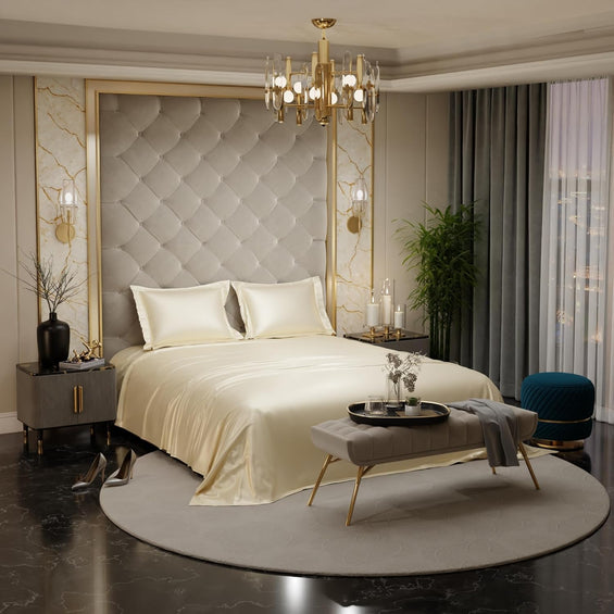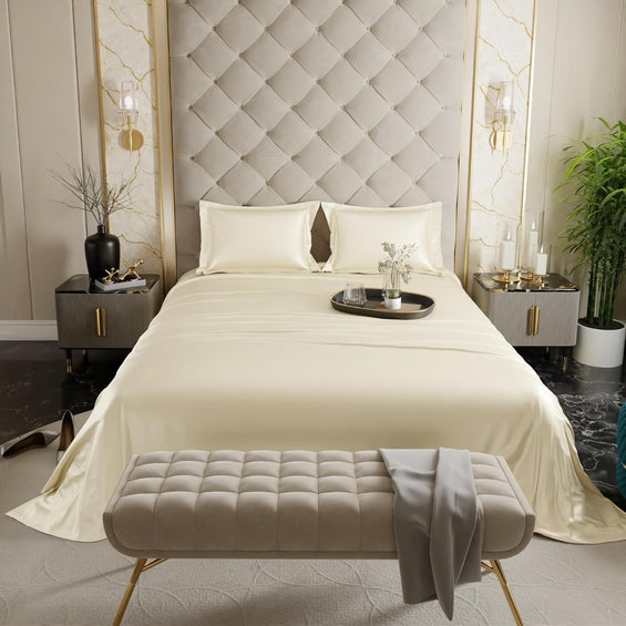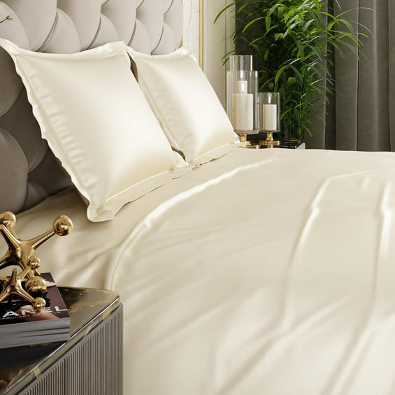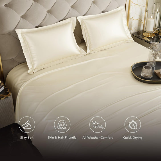 Satin King Bed Bedsheet with Pillow covers (Champagne)