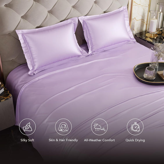 Satin King Bed Bedsheet with Pillow covers (Lilac)