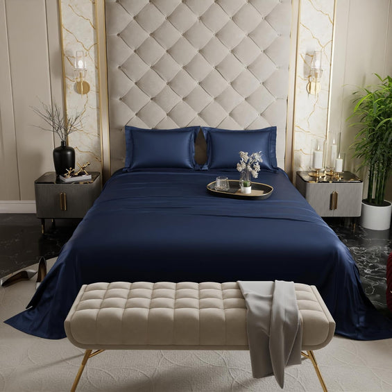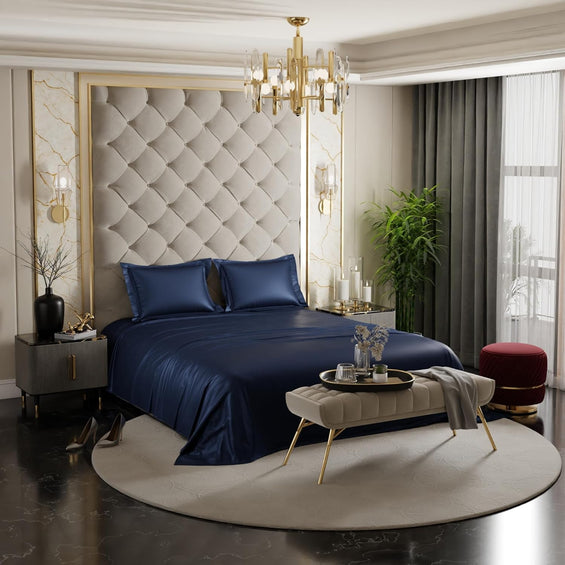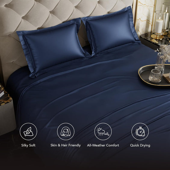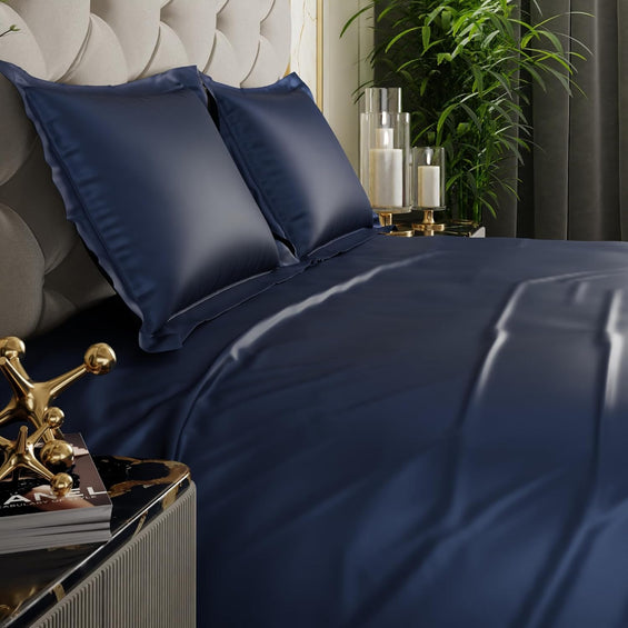 Satin King Bed Bedsheet with Pillow covers (Navy Blue)
