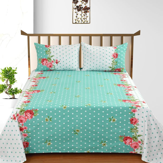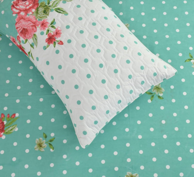 King Bed Bedsheet with Quilted Pillow covers (Teal Polka)