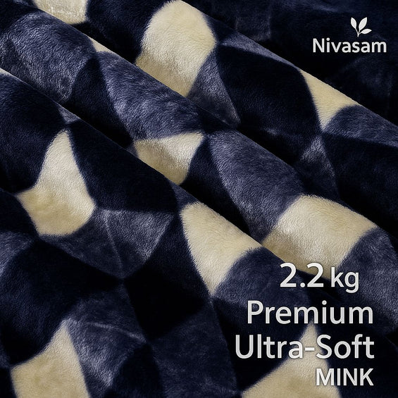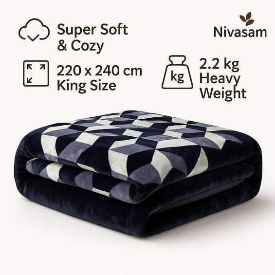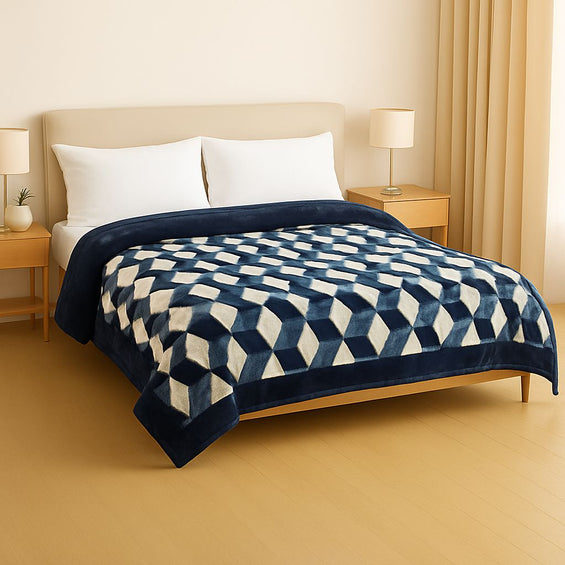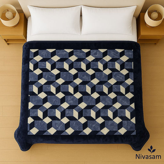 1 Ply Double Bed Mink Blanket (Midnight Blocks)