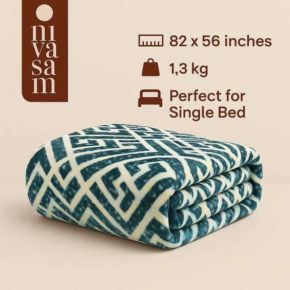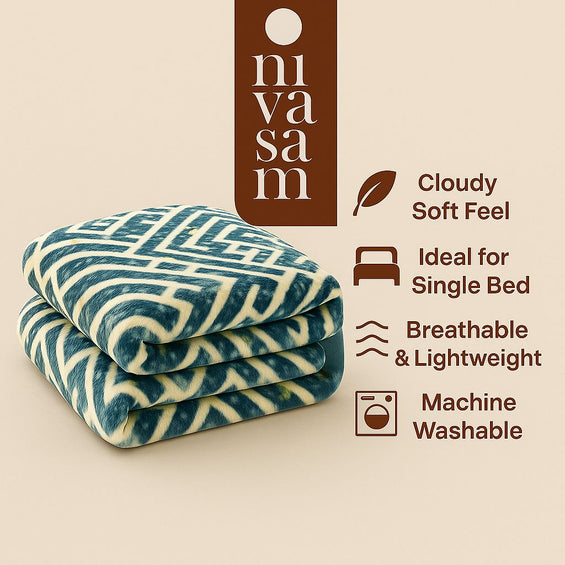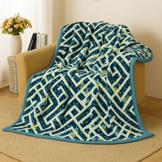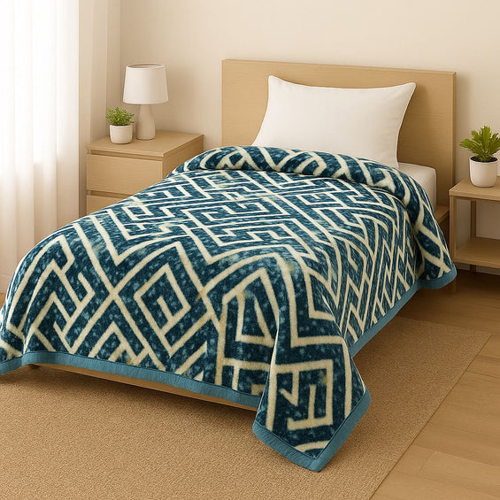 1 Ply Single Bed Mink Blanket (Blue Horizon Maze)