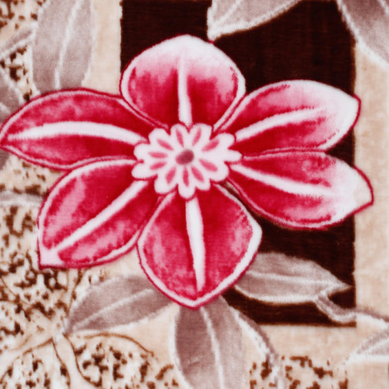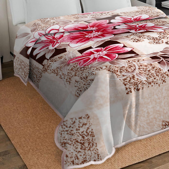 2 Ply Double Bed Mink Blanket (Beige & Red Floral Blocks)