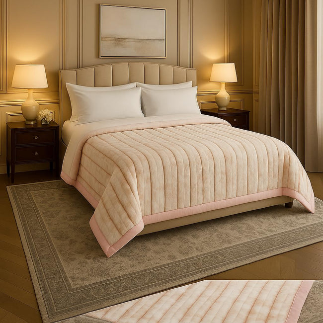 3 Ply King Bed Faux Rabbit Fur Blanket (Blush Cloud)