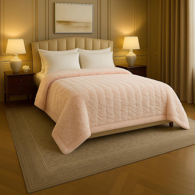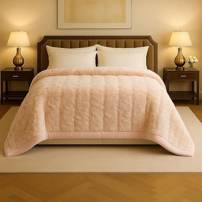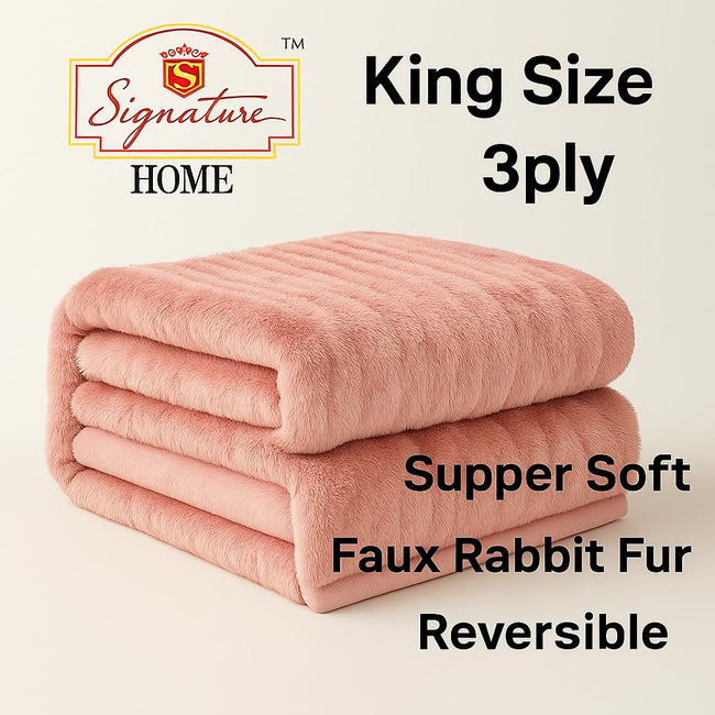 3 Ply King Bed Faux Rabbit Fur Blanket (Peach)