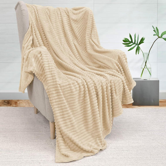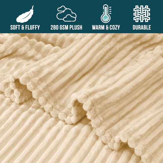 Beige Ribbed Sherpa Single Bed Throw Blanket