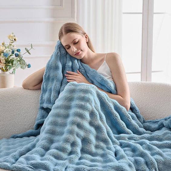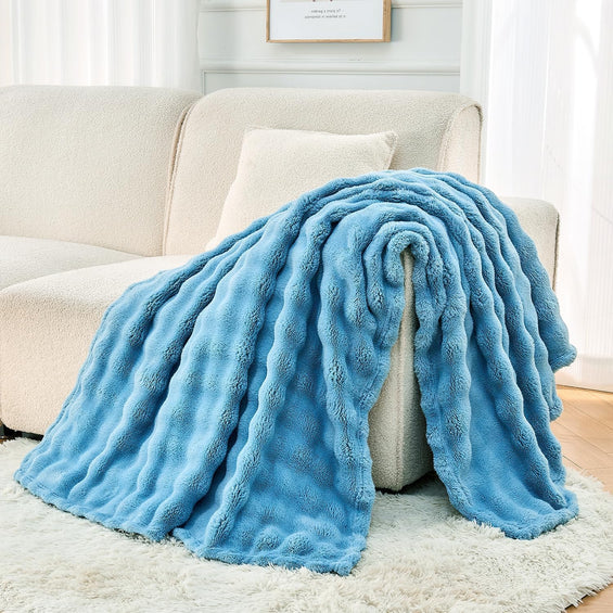 Bubble Fleece Double Bed Throw Blanket (Sky Blue)