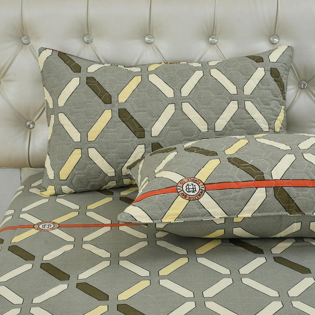 King Bed Bedsheet with Quilted Pillow covers (Geometry)