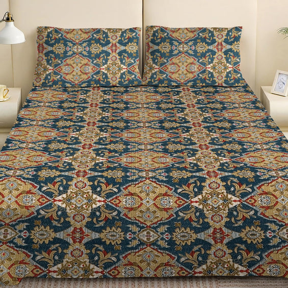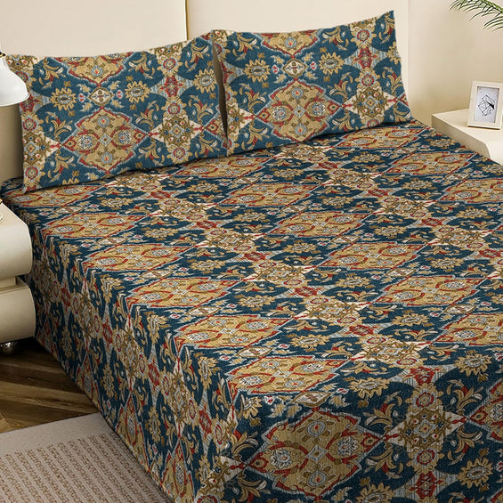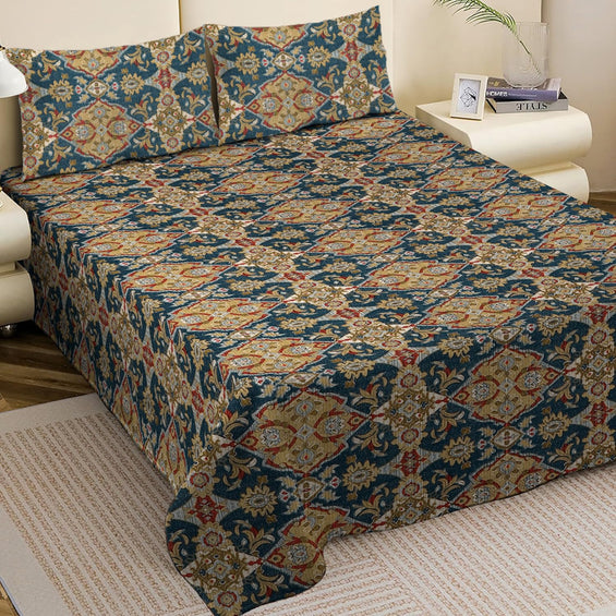 King Bed Bedsheet with Pillow Covers (Royal Ikat Charm)