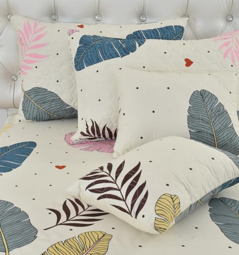 Leafy Double Bedding Set with Reversible Comforter, Flat Bedsheet, Pillow covers & Cushions, 6 Pcs