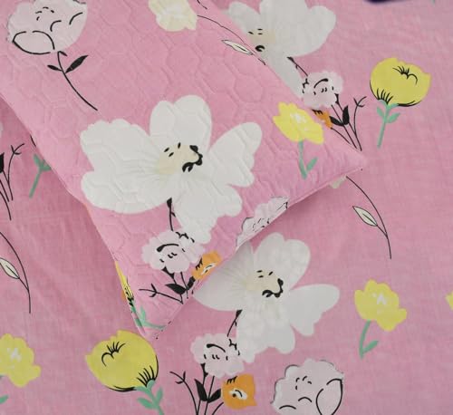 Pink Blossom Double Bedding Set with Reversible Comforter, Flat Bedsheet, Pillow covers & Cushions, 6 Pcs