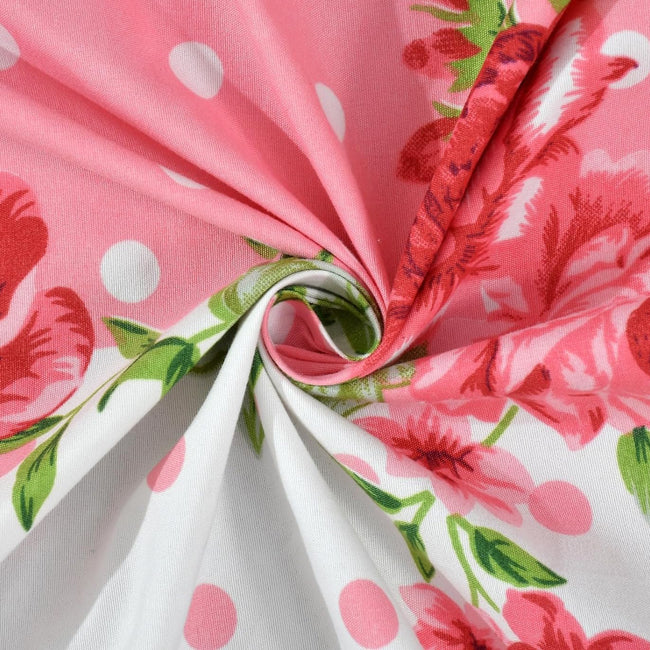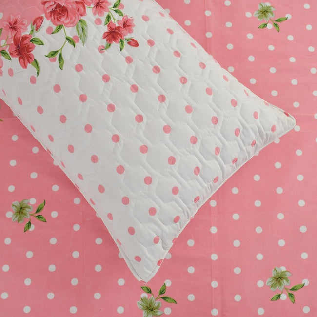 King Bed Bedsheet with Quilted Pillow covers ( Pink Polka)