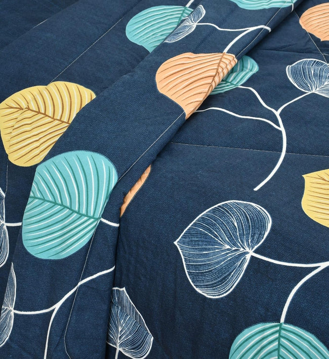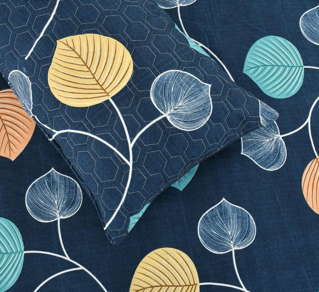 King Bed Bedsheet with Quilted Pillow covers (Sea Leaf Flora)