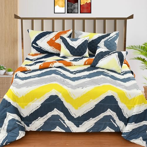 Color Splash Double Bedding Set with Reversible Comforter, Flat Bedsheet, Pillow covers & Cushions, 6 Pcs