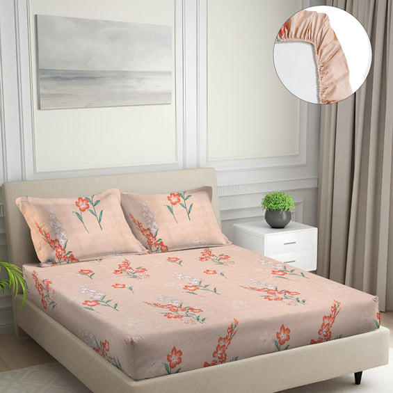 King Bed Fitted Bedsheet with Pillow Covers (D3)