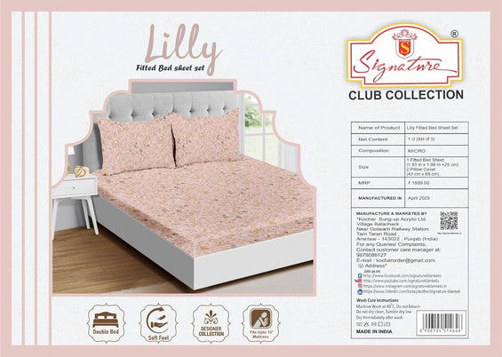 King Bed Fitted Bedsheet with Pillow Covers (D4)
