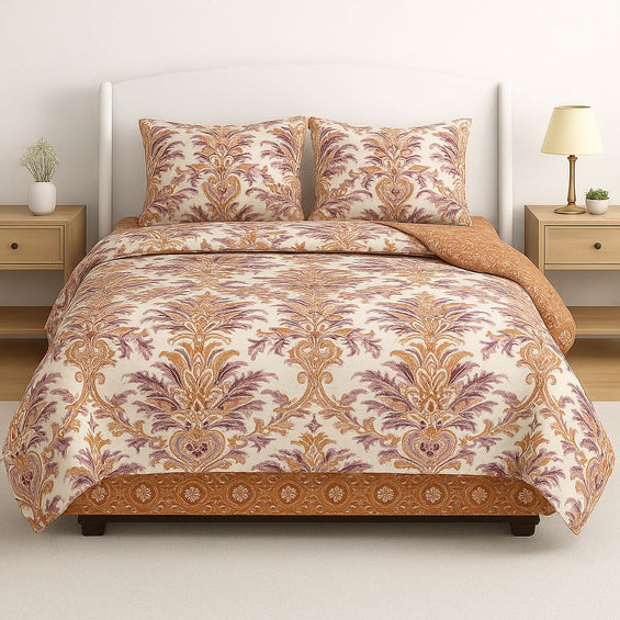 Double Bed Reversible 4 Piece Comforter & Bedsheet Set (Eden Bloom)