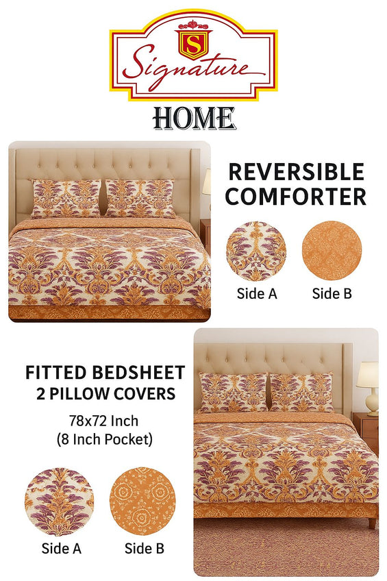 Contents: 1 Comfoter Double Bed, 1 King Size Fitted Bedsheet, 2 Pillow Covers