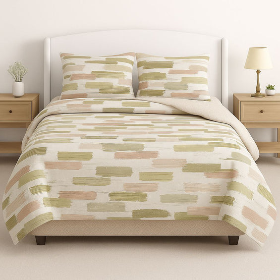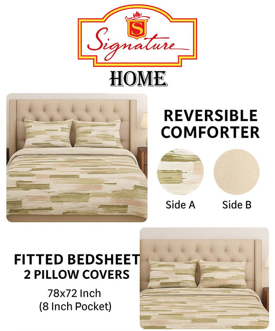 Double Bed Reversible 4 Piece Comforter & Bedsheet Set (Sahara Mist)