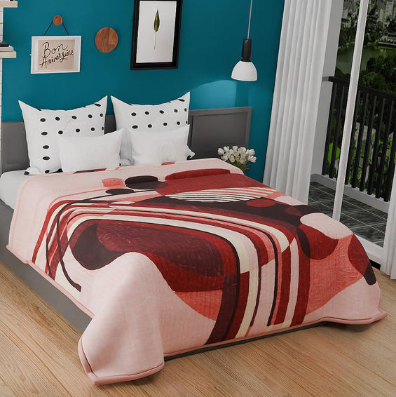 2 Ply Double Bed Mink Blanket (Blush Circles)