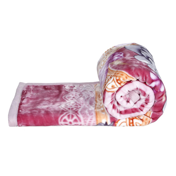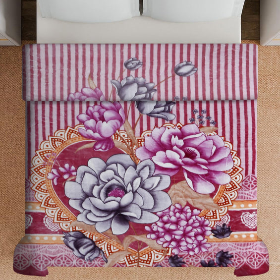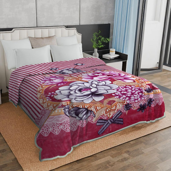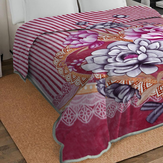 2 Ply Double Bed Mink Blanket (Red Floral Mandala)