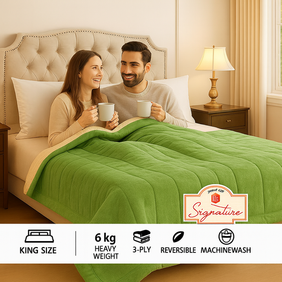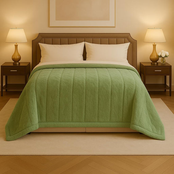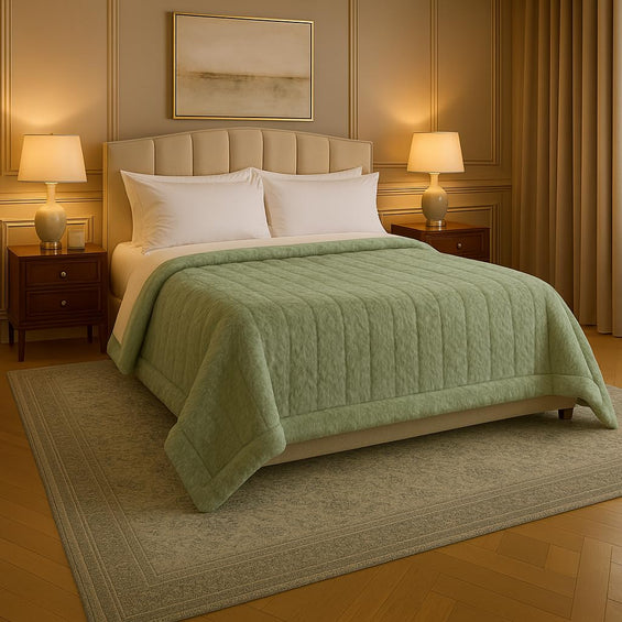 3 Ply King Bed Faux Rabbit Fur Reversible Blanket (Mint)