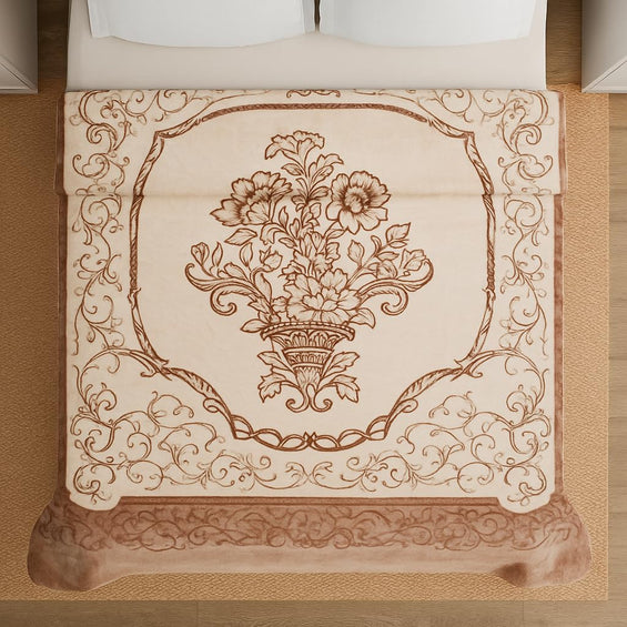 1 Ply Double Bed Mink Blanket (Bloom Beige)