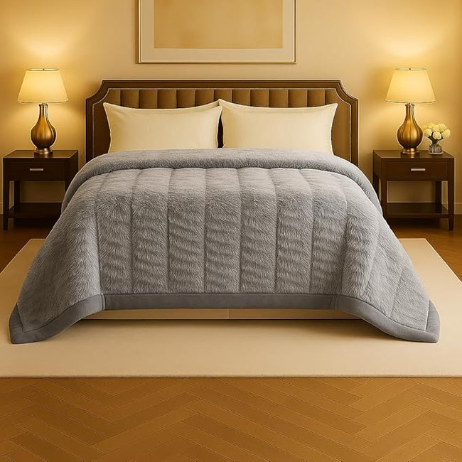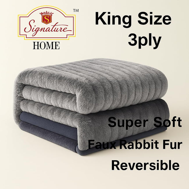 3 Ply King Bed Faux Rabbit Fur Blanket (Grey)