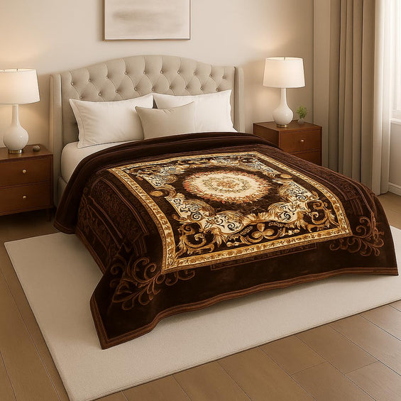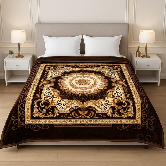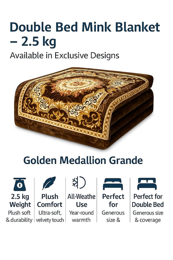 1 Ply Double Bed Mink Blanket (Golden Medallion Grnade)
