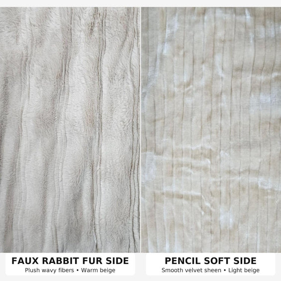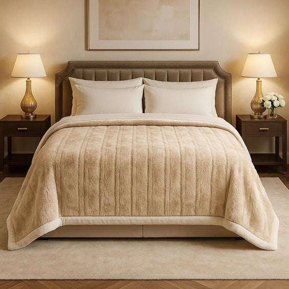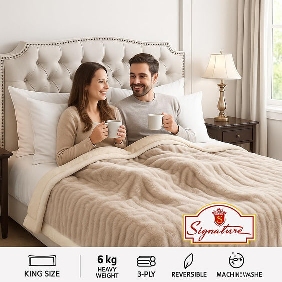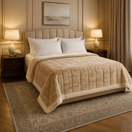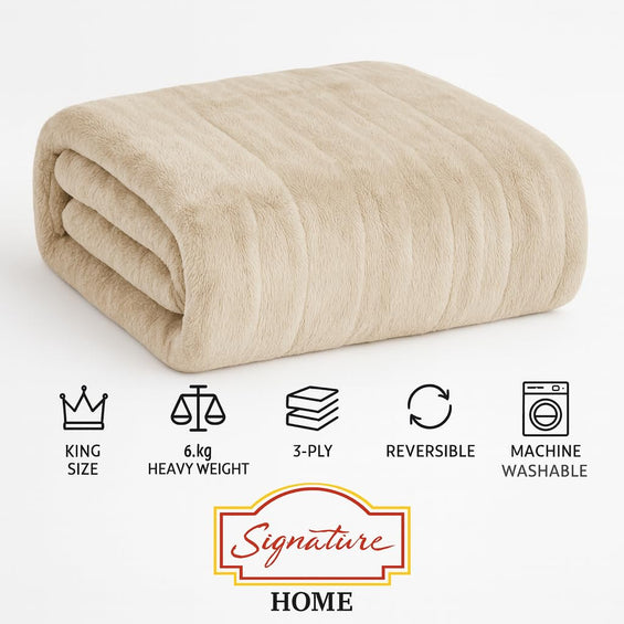 3 Ply King Bed Faux Rabbit Fur Blanket (Beige)