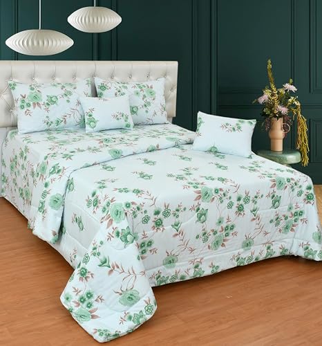 Garden Double Bedding Set with Reversible Comforter, Flat Bedsheet, Pillow covers & Cushions, 6 Pcs