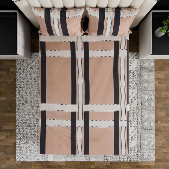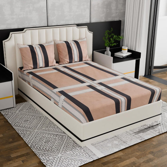 Fitted King Bed Bedsheet with Pillow covers (Modern Maze)