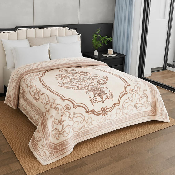 1 Ply Double Bed Mink Blanket (Bloom Beige)