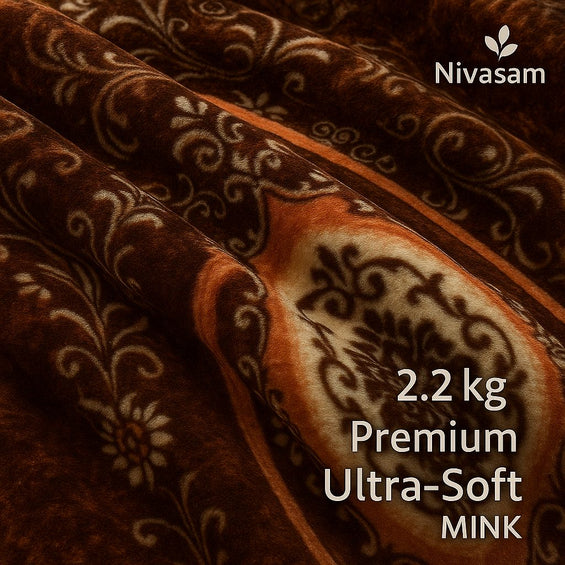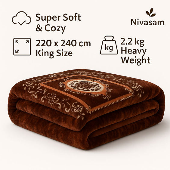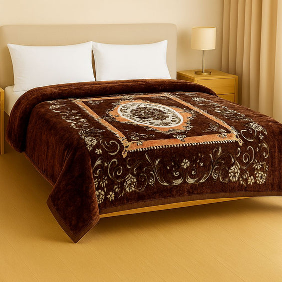 1 Ply Double Bed Mink Blanket (Maroon Medallion)