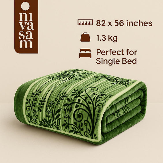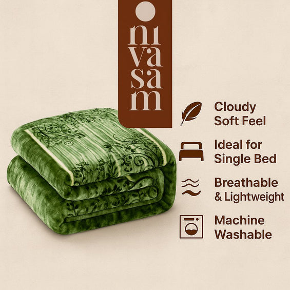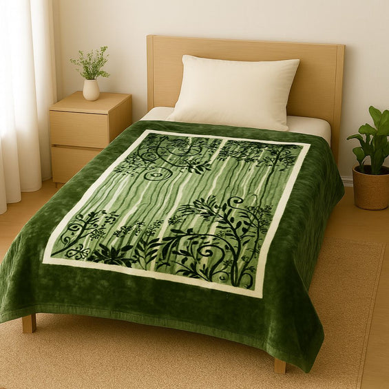1 Ply Single Bed Mink Blanket (Emerald Bloom)