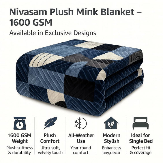 1 Ply Single Bed Mink Blanket (Midnight Mosaic)