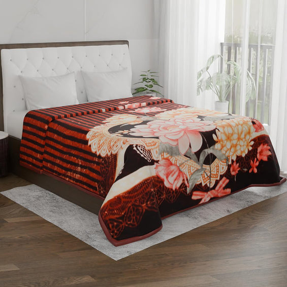 2 Ply Double Bed Mink Blanket (Flora Elegance)