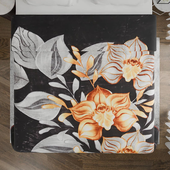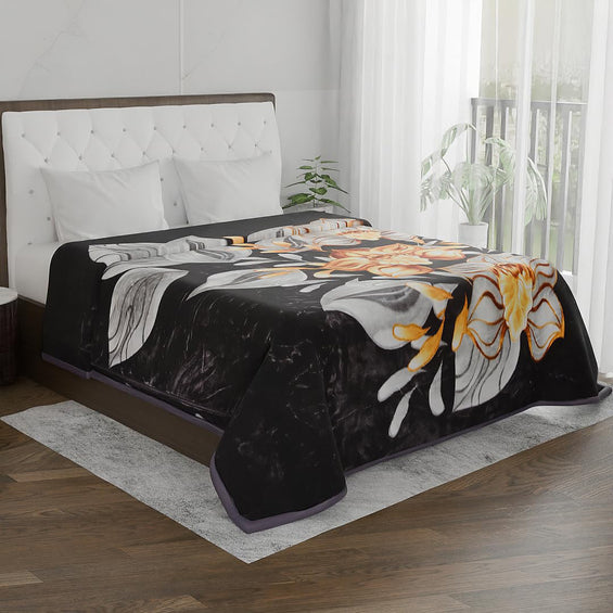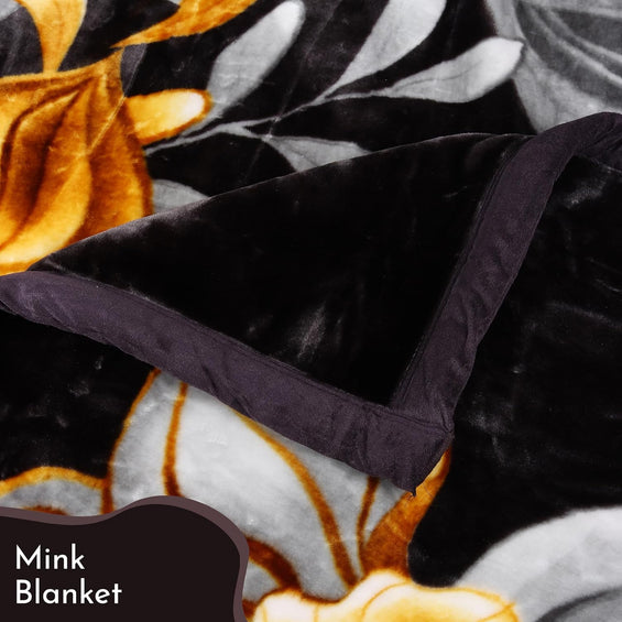 2 Ply Double Bed Mink Blanket (Midnight Bloom)