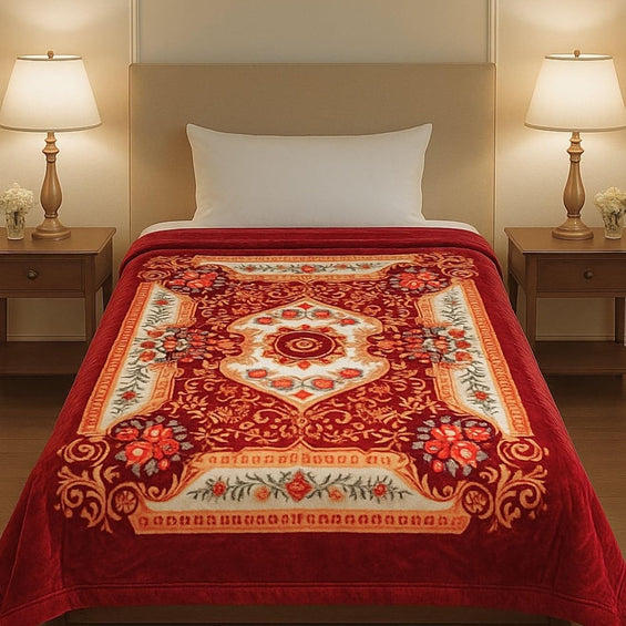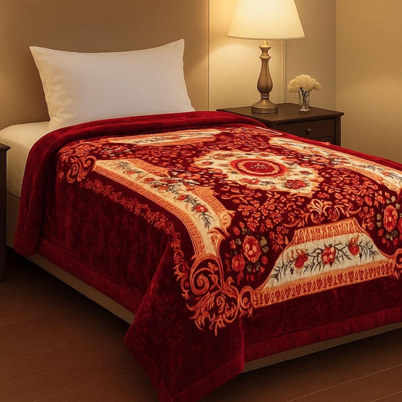 2 Ply Single Bed Mink Blanket (Crannberry Red)